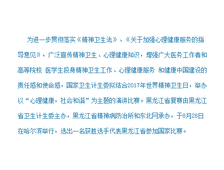 世界精神卫生日“心理健康,社会和谐”主题演讲比...