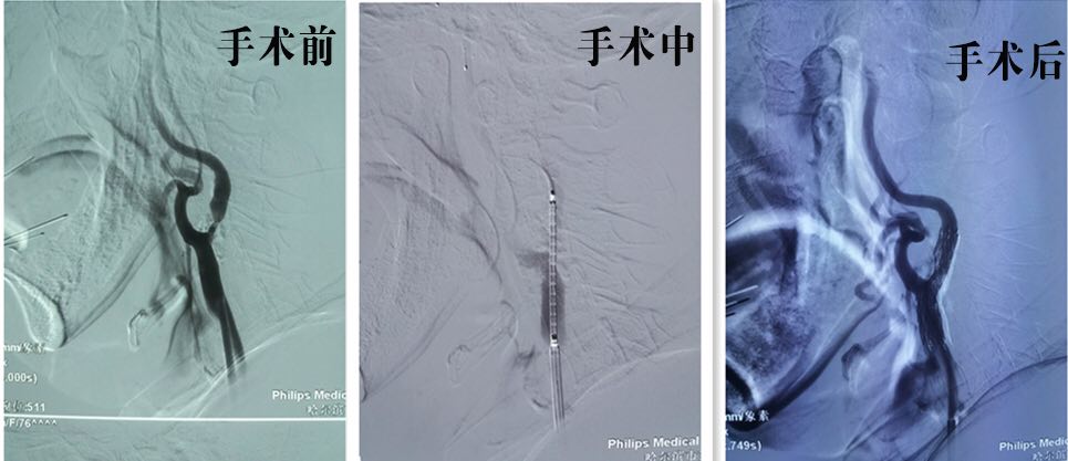 经过认真讨论,朱澍副主任决定为其实施颈动脉狭窄的支架置入治疗。由于张大娘年纪较大且曾患有心梗,加大了手术的难度。而张大娘颈内动脉起始部的重度狭窄,使术中在通过狭窄处时,极有可能引起斑块或血栓脱落,从而导致远端栓塞,使患者在术中立即发生中风。在制定周密的方案后,哈医大一院史怀璋教授、哈市二院神经外科朱澍副主任共同为张大娘的左侧颈内动脉狭窄处植入支架并成功释放,使其脑部血流更加畅通,手术顺利完成。术后,张大娘右侧肢体无力的症状就得到了明显好转,没有神经系统并发症的出现后顺利出院。