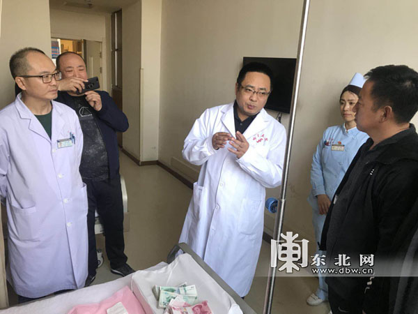 东北网健康频道消息 (通讯员 王甦 高军震) 28岁的张卉子先后两次被烧伤,造成颜面、双手严重被烧伤,眼睑不能闭合、口唇不能开大、双手严重毁损,饱受折磨的她在母亲的陪伴下于今年3月来到哈尔滨市第五医院整形美容科求医后,家境贫困的母女俩的不幸遭遇得到了医护人员和社会好心人的关注和帮助,现已接受了两次手术。今日上午,双鸭山市饶河县西丰镇政府王文革人大主席和粮食局代表周长林等人带着镇里员工捐助的2万6千爱心款来到哈尔滨市第五医院整形美容科,看望仍在住院治疗的张卉子。