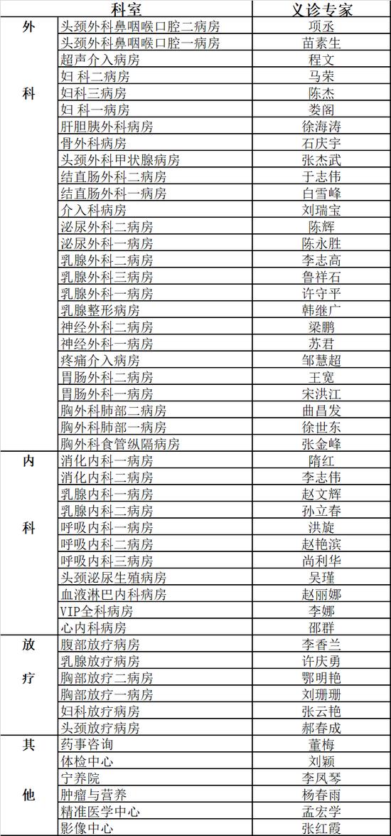 4月15日哈医大肿瘤医院义诊专家名单